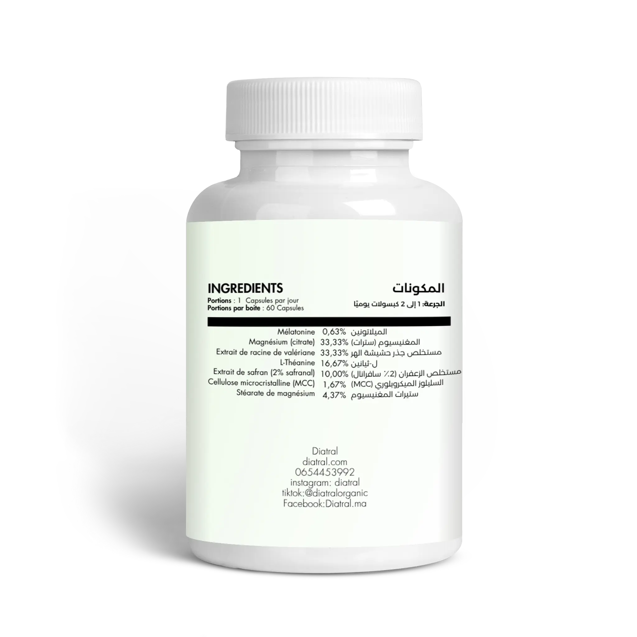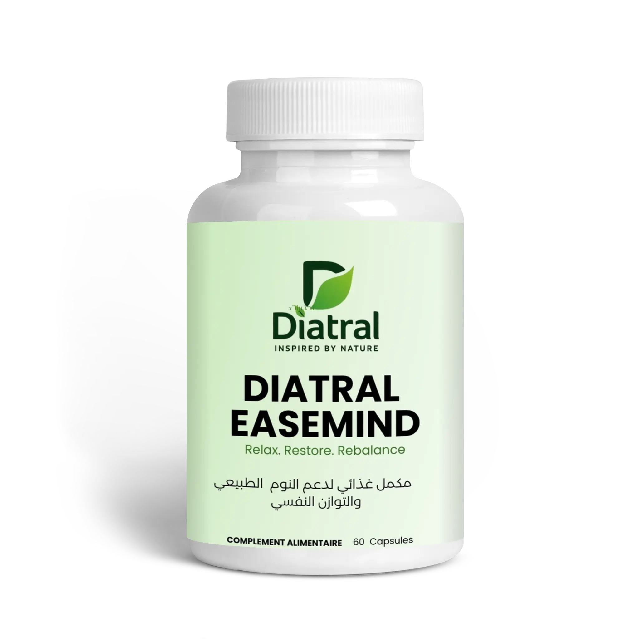Diatral Easemind هو مكمل غذائي طبيعي مصمم خصيصًا للأشخاص الذين يعانون من الأرق، صعوبة النوم، والتوتر الليلي. يجمع هذا المكمل بين مكونات طبيعية تساعد على تهدئة الجهاز العصبي، تعزيز الاسترخاء، وتحسين الإيقاع الطبيعي للنوم، مما يجعله خيارًا مثاليًا للحصول على نوم عميق، مريح، ومتواصل دون انقطاع.
